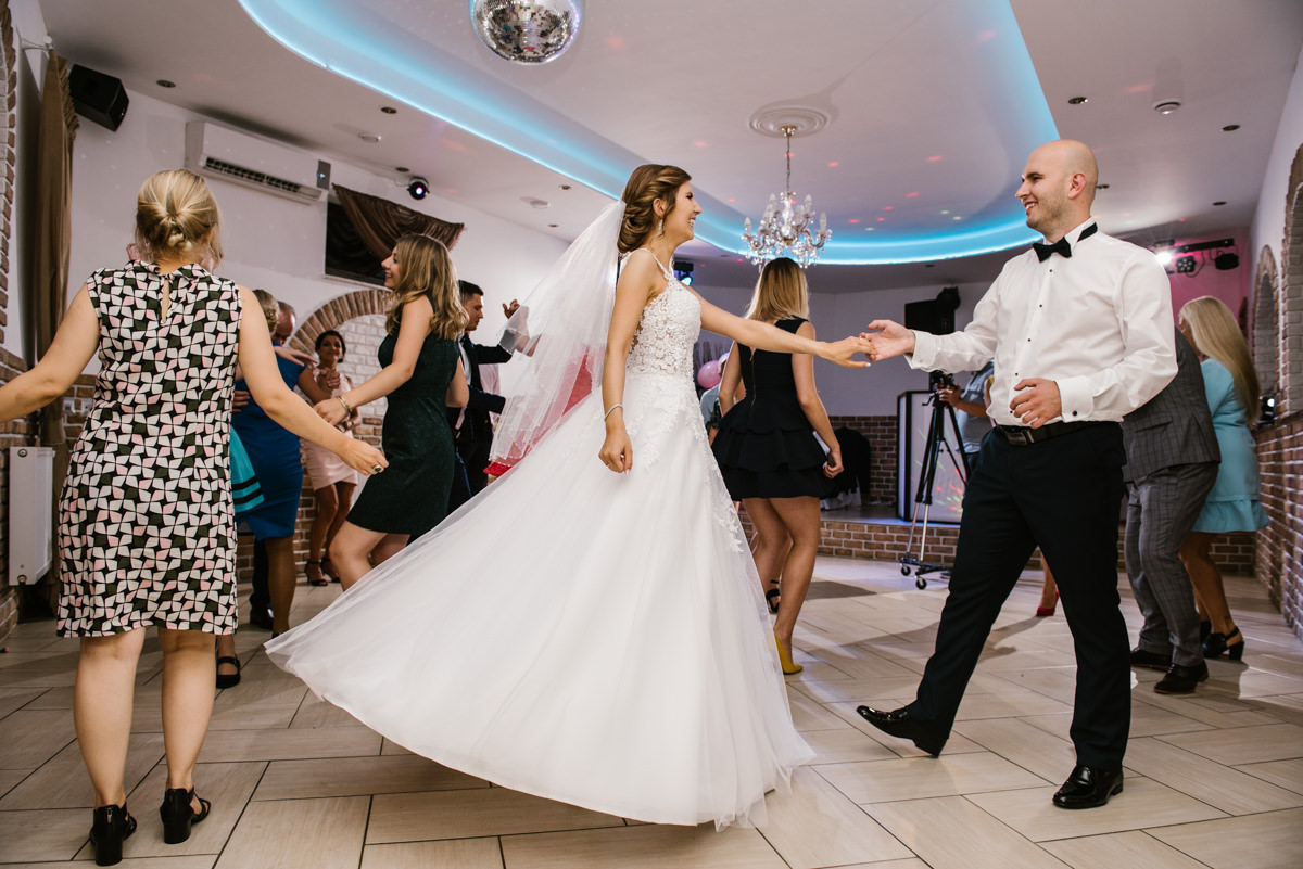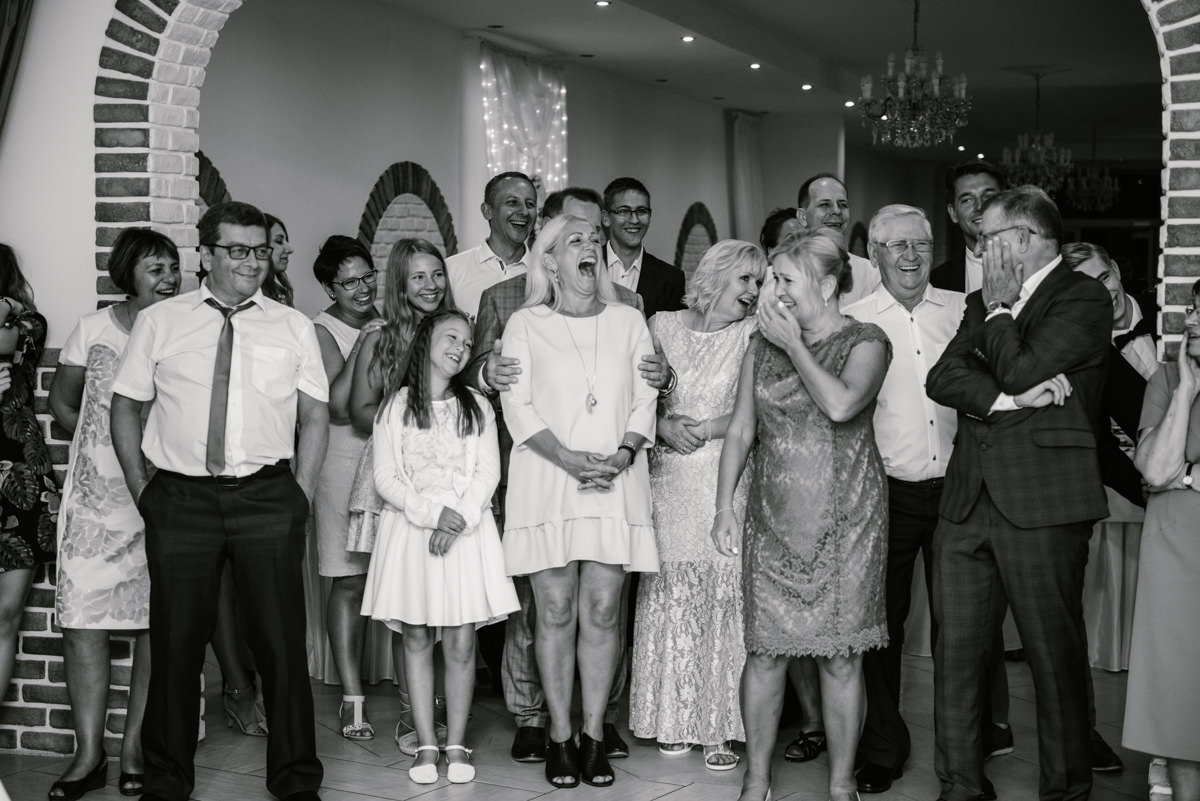 Już od przygotowań świetna atmosfera unosiła się w powietrzu i nawet w kościele nie zabrakło uśmiechów :) W powietrzu również unosiły się ciężkie chmury i największa ulewa rozpoczęła się akurat na wyjściu z kościoła. To jednak nikomu nie popsuło humoru i goście świetnie się bawili. Muszę też przyznać, że tak szalonych oczepin dawno nie widziałem, to akurat zasługa świetnej oprawy DJ-a Patryka :)